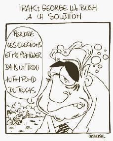 Les moyens financiers dont il dispose se réduisent en peau de chagrin à l’aune d’un déficit budgétaire colossal ; il a pourtant tout promis : une réduction continue des impôts ; la réalisation hyper-onéreuse et à l’efficacité douteuse d’un bouclier anti-missiles ; la colonisation de la Lune et la conquête de Mars au prix de l’abandon de la station interplanétaire et du satellite d’observation Hubble (qui ont déjà coûté une fortune à la communauté internationale). En promettant tout et son contraire au nom de Dieu, il peut obtenir à l’arraché une courte victoire à la Pyrrhus dans l’adversité militaire, à la manière d’un Richard Nixon, au risque de s’exposer quelques mois plus tard à un “irakgate”qui le contraindrait à démissionner. À moins que le corps électoral américain, gavé de promesses fallacieuses, ne finisse par se ressaisir à l’énoncé des sacrifices colossaux qui lui seront réclamés. À la mesure de ce tremblement de terre majeur qui doit ravager la Californie avant le terme de l’année...